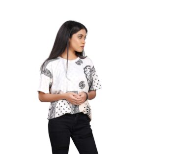 BEAUTIFUL SHRIEZ OVERSIZED WHITE PRINT WOMEN T-SHIRT BY SHRIEZ