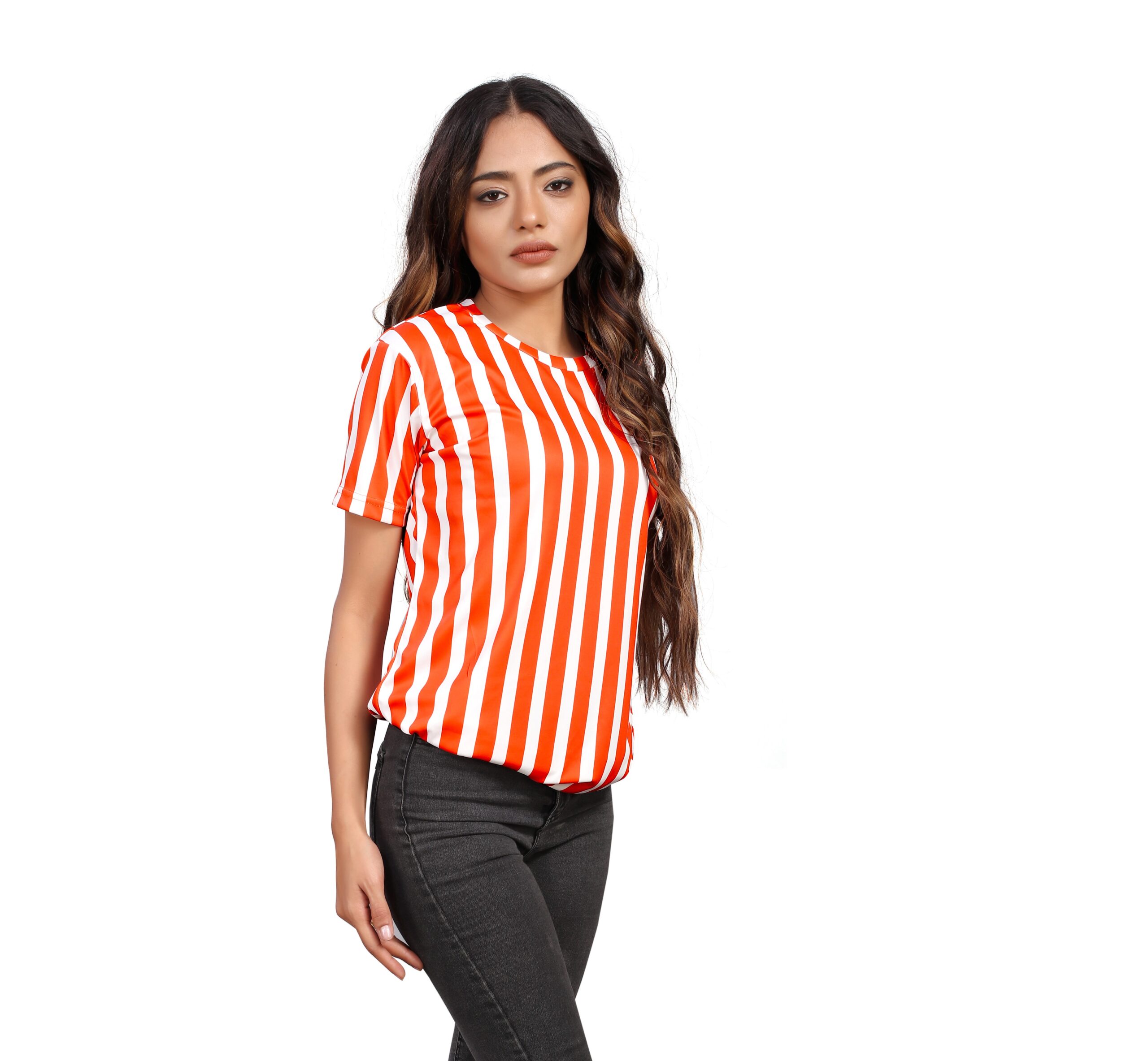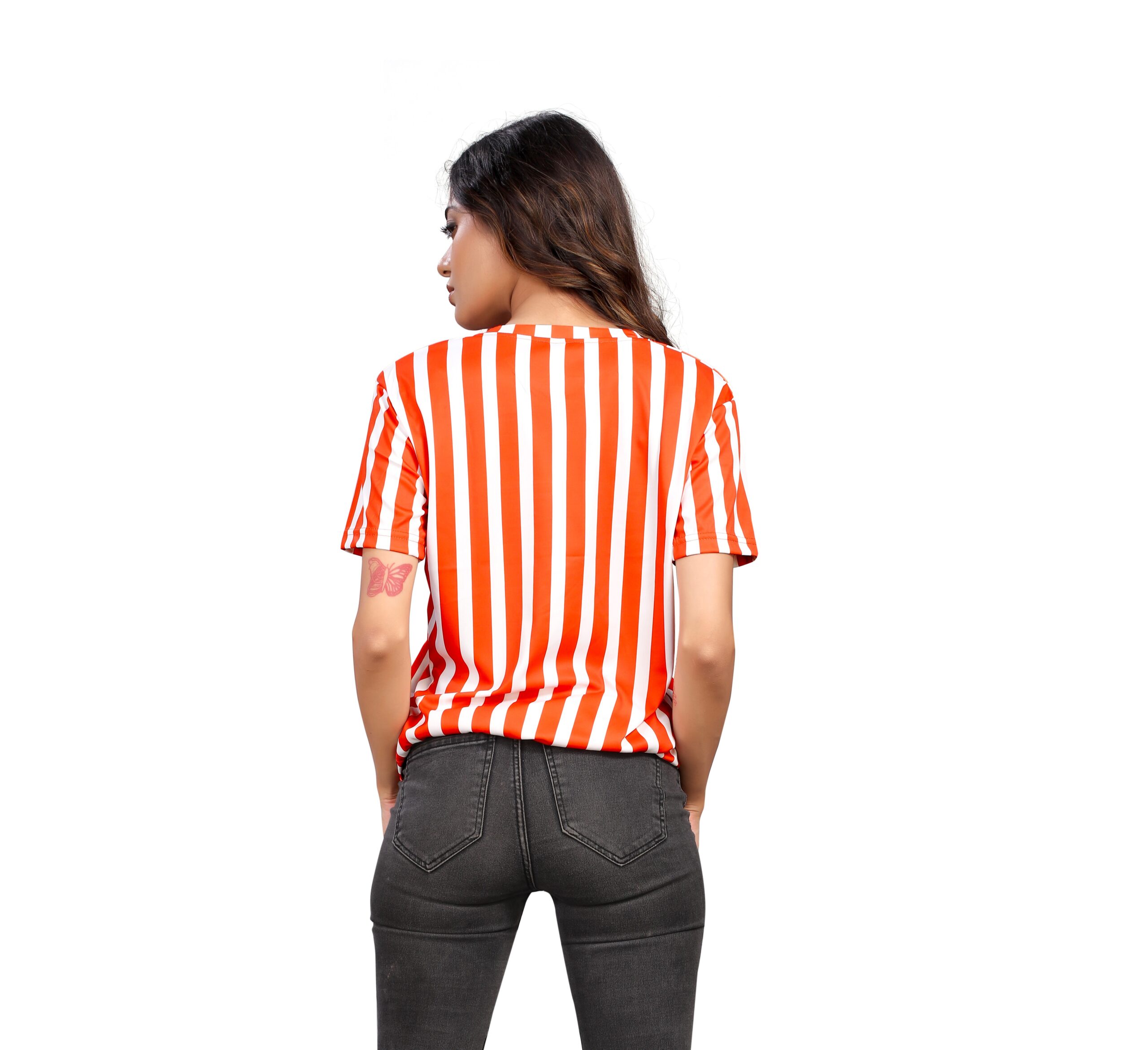 BEAUTIFUL SHRIEZ OVERSIZED ORANGE STRIPE WOMEN T-SHIRT BY SHRIEZ