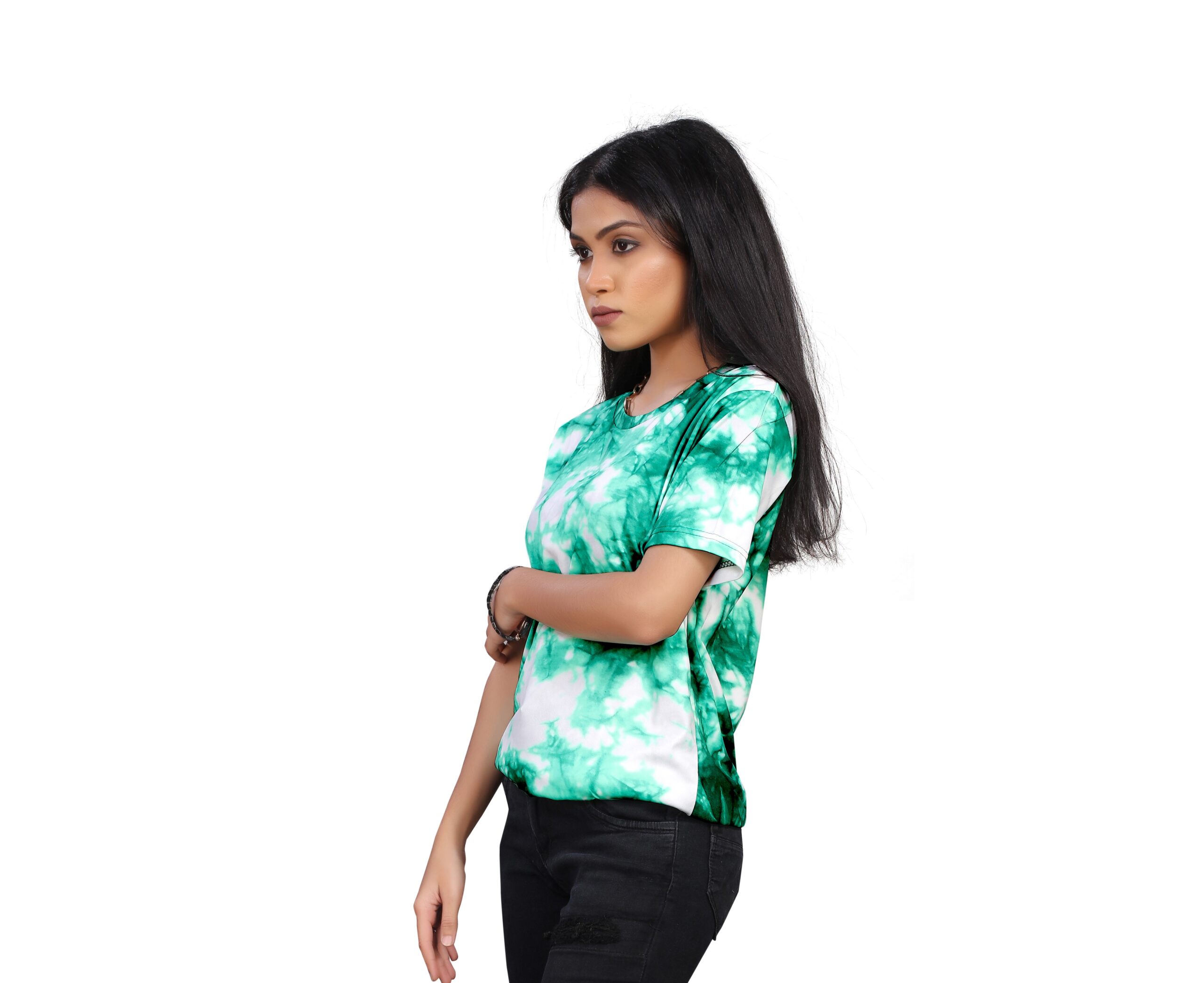 BEAUTIFUL SHRIEZ OVERSIZED WOMEN T-SHIRT GREEN TIE-DIE BY SHRIEZ