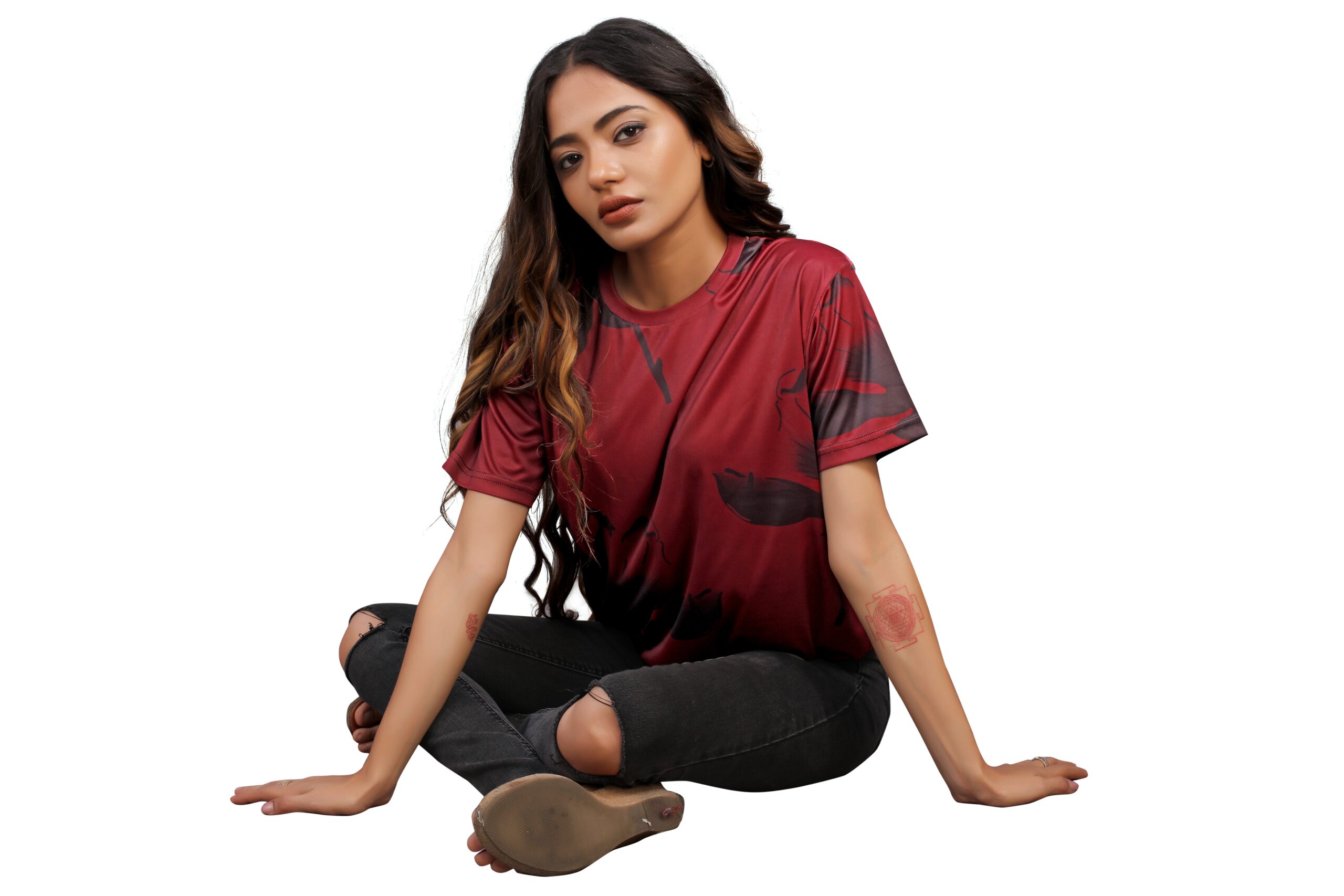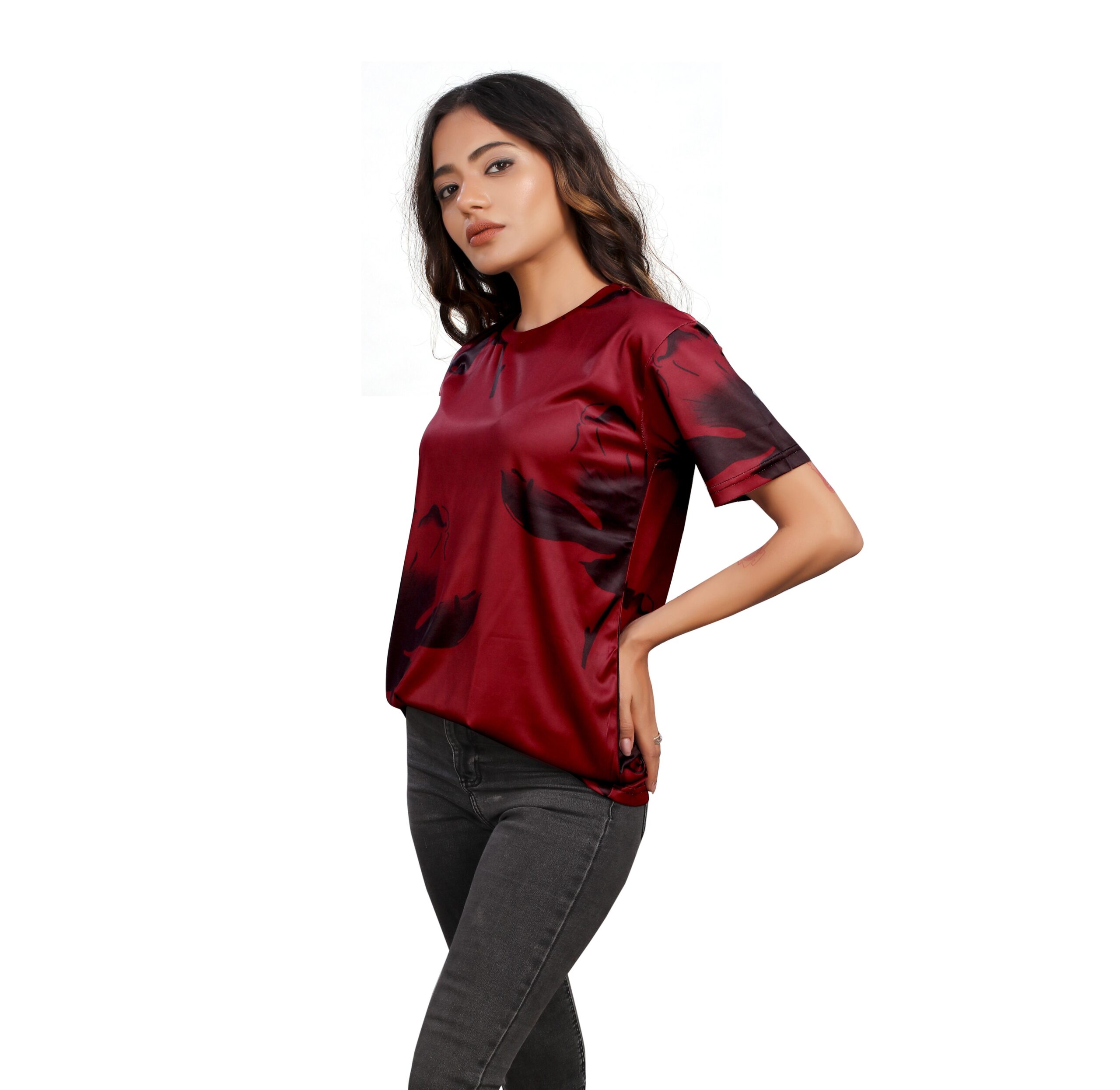 BEAUTIFUL SHRIEZ OVERSIZED WOMEN T-SHIRT MEHROON BY SHRIEZ